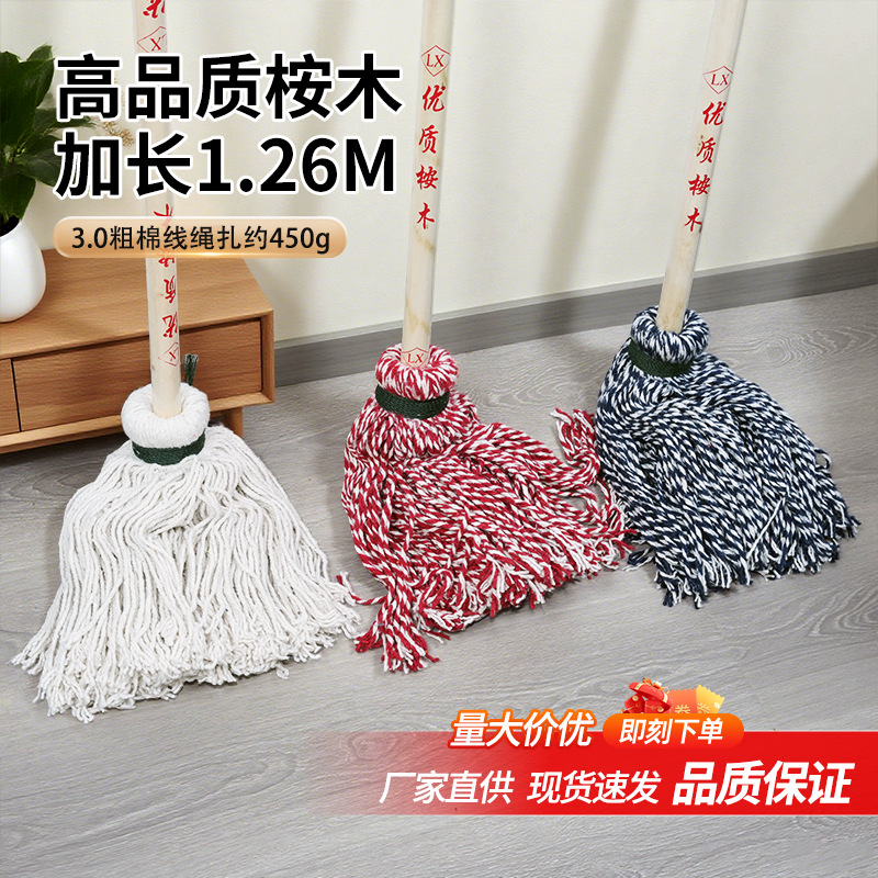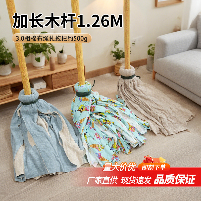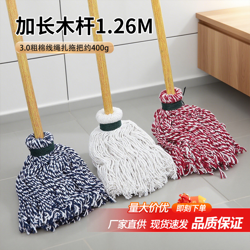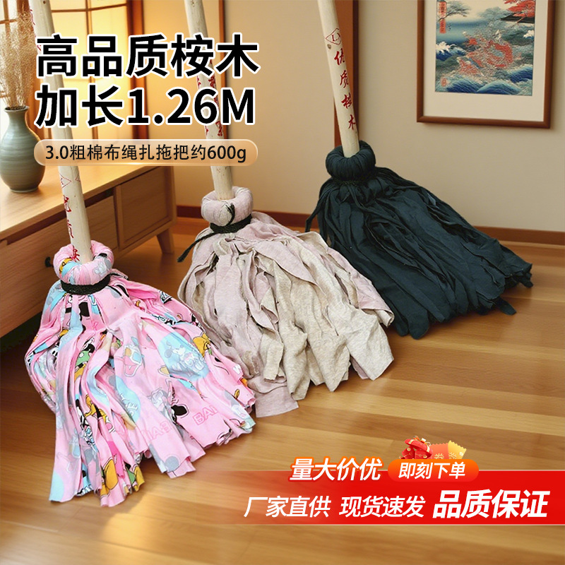高品质桉木老式拖把粗棉布绳扎拖布耐脏加长木杆吸水拖地墩布批发