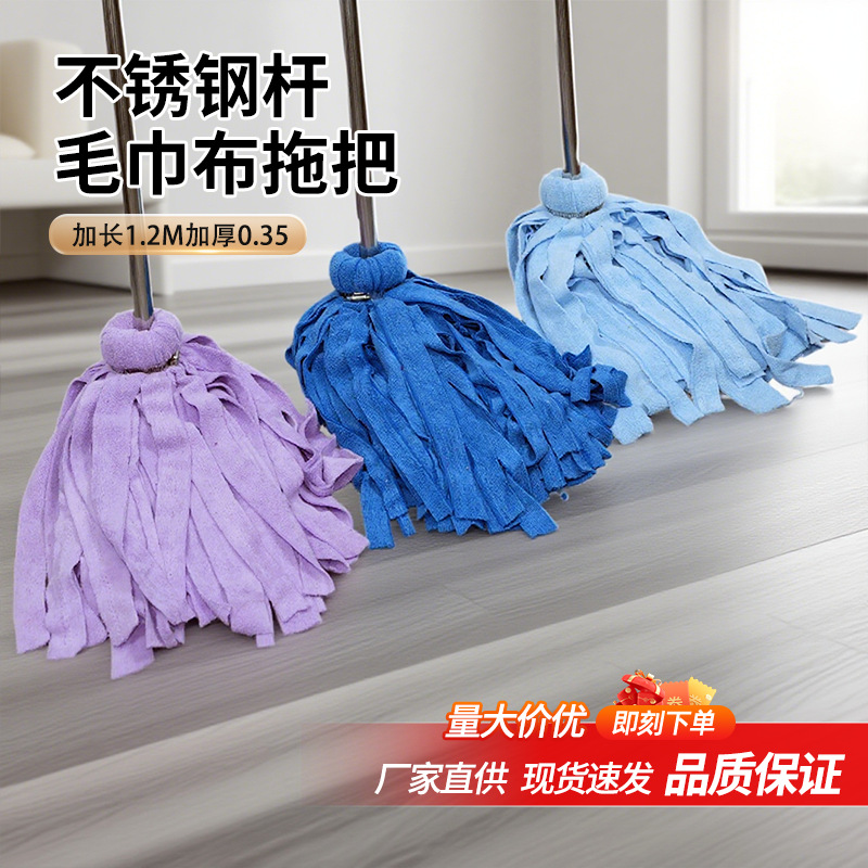 老式不锈钢杆毛巾布拖把耐脏加长加固防滑拖布家用酒店吸水拖把