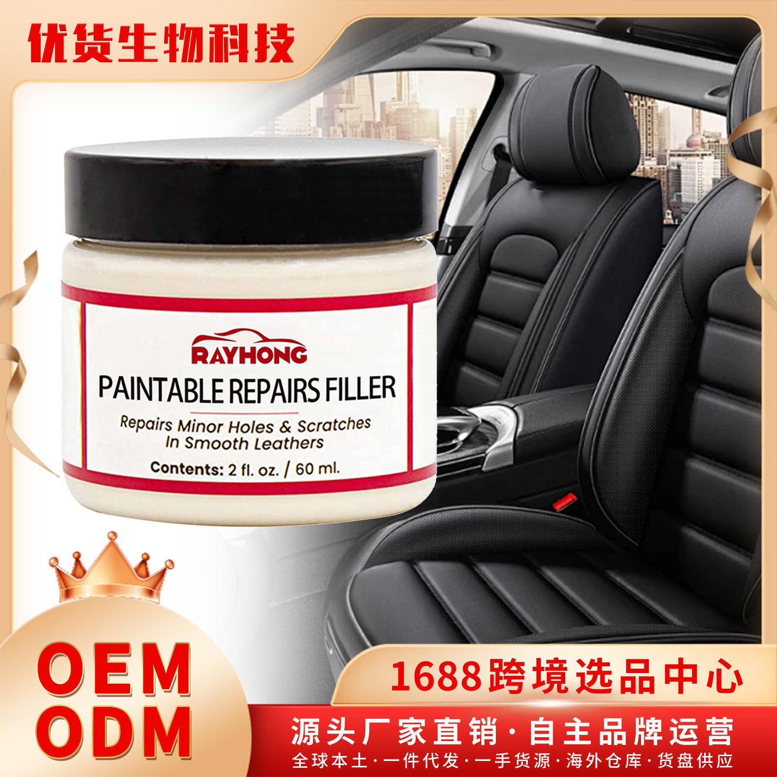 RAYHONG 皮革补平膏 汽车座椅划痕补合沙发皮革破损翻新补合膏