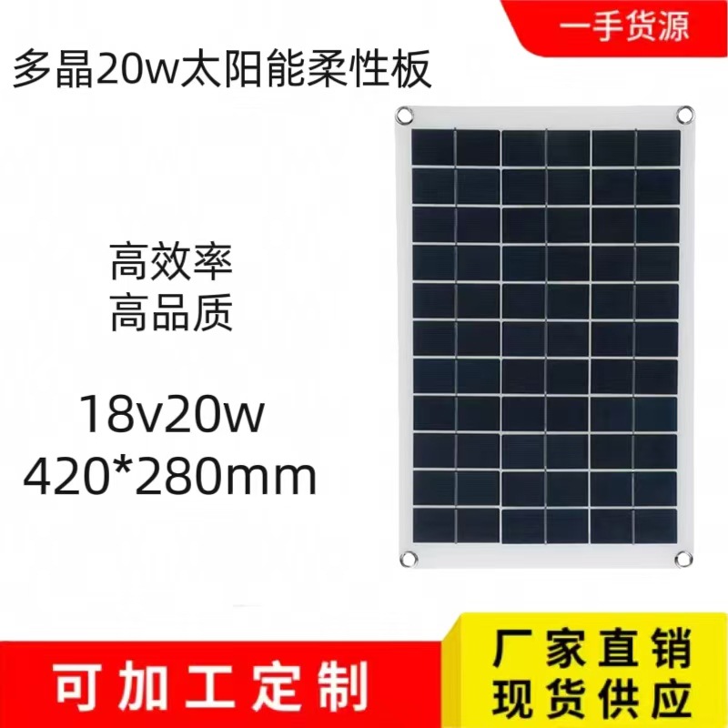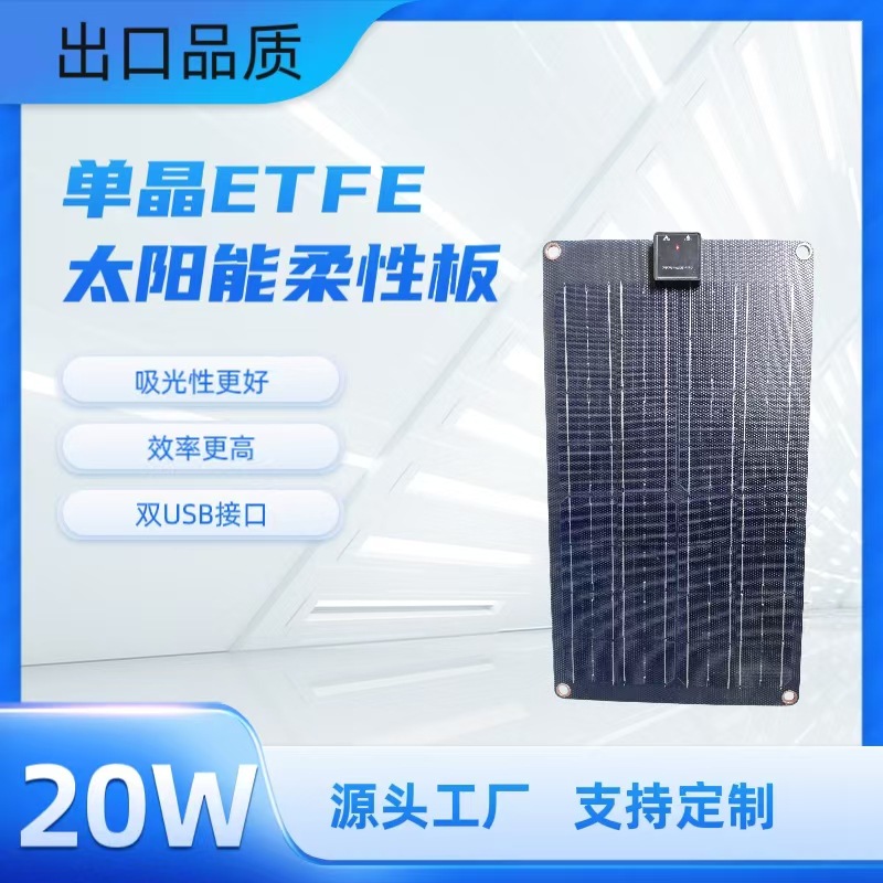 单晶18v20w太阳能光伏板太阳能柔性板光伏组件户外便携手机充电