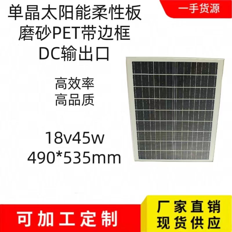 单晶太阳能光伏柔性板DC输出口18v45w太阳能发电板光伏组件带框