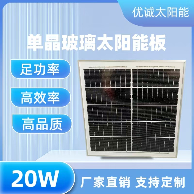 5v20w单晶玻璃太阳能光伏发电板户外家用光伏组件