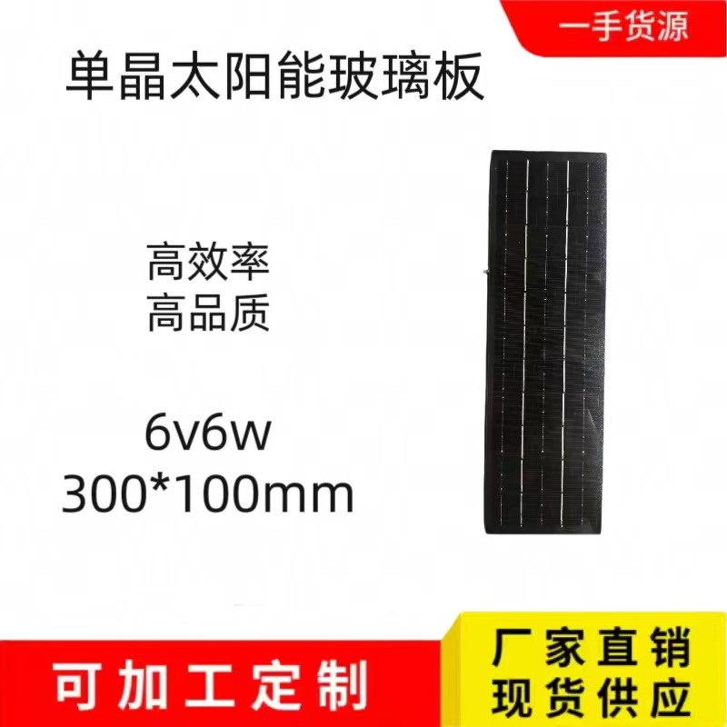 太阳能黑色单晶玻璃板6v6w光伏发电板太阳能电池板光伏组件太阳能