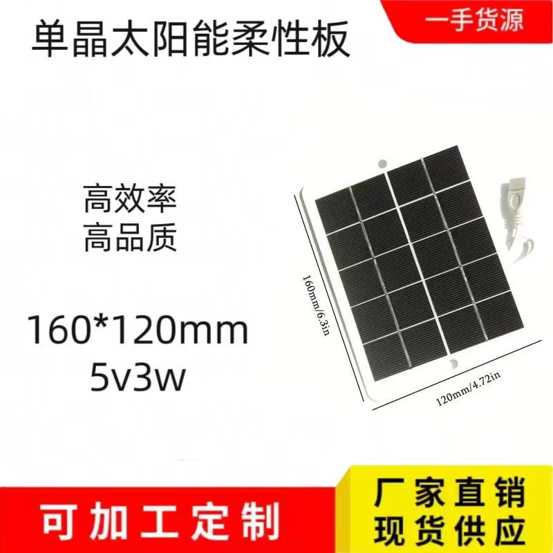 太阳能光伏发电板单晶硅3w太阳能便携移动电压手机充电户外应急