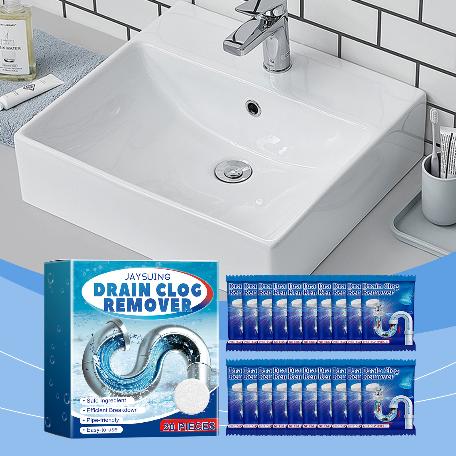 Jaysuing 管道清洁片 厨房卫生间排水管道清洁油脂头发堵塞异味