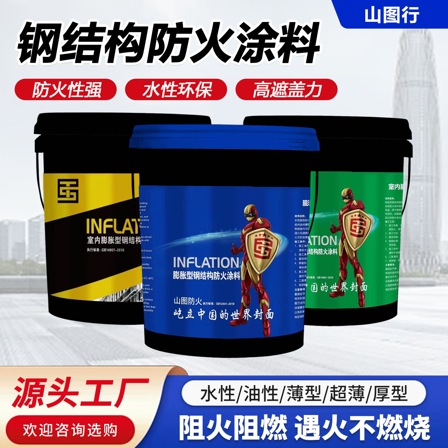 厂家供应国标钢结构膨胀性耐高温绿色环保阻燃水性油性防火涂料