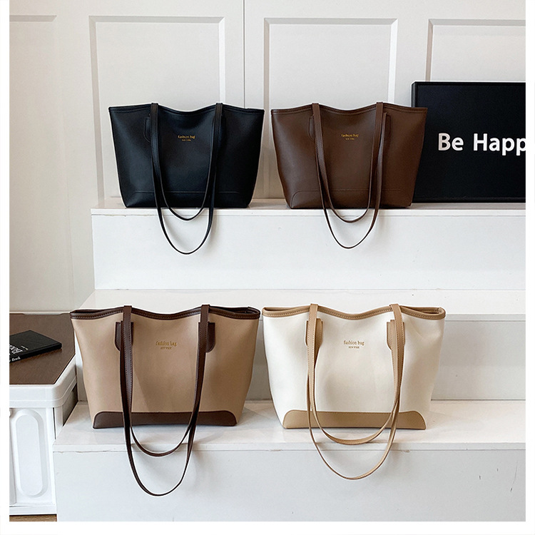 跨境2025秋季新款托特包休闲腋下包韩版通勤时尚撞色单肩包大容量