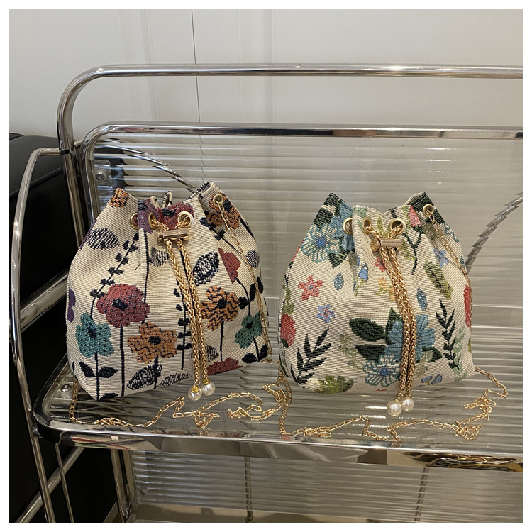 跨境复古时尚百搭ins抽绳单肩包女2025秋季斜挎包洋气水桶包女包