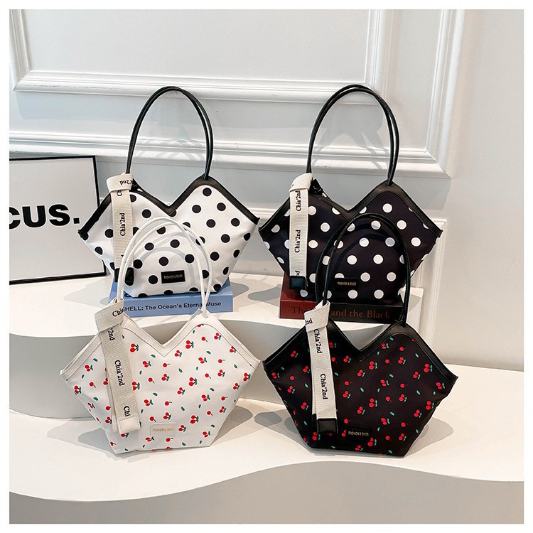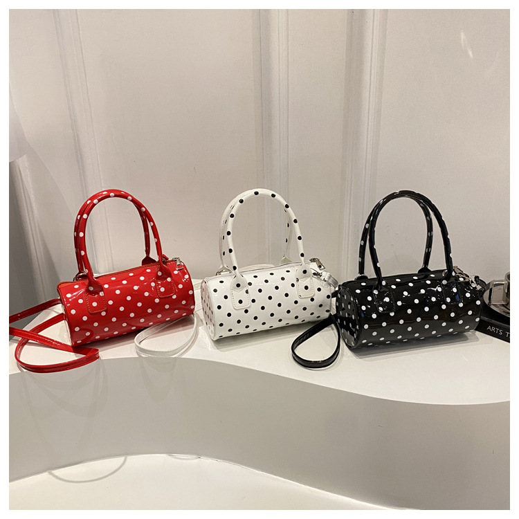 跨境波点简约女式2025新款夏天流行大容量潮流手提圆筒枕头斜挎包