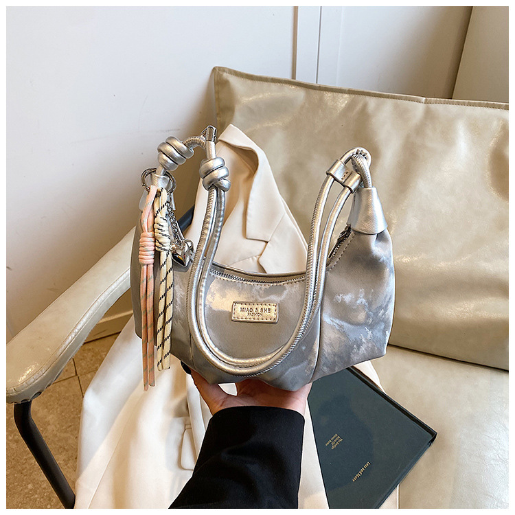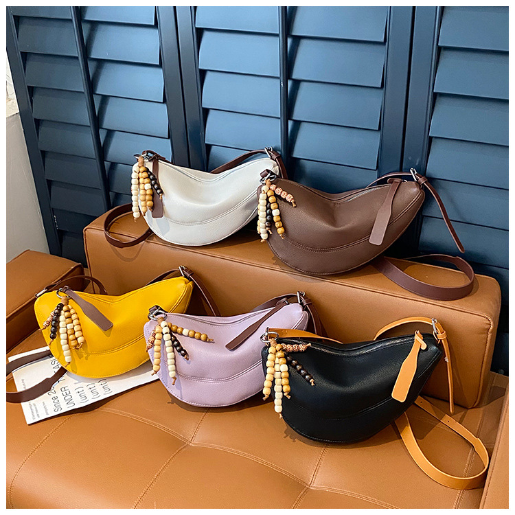 2025夏休闲大容量通勤单肩斜挎包软皮牛角包包女腋下包休闲百搭