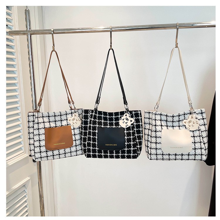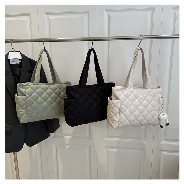 跨境2025大学生上课通勤托特包新款大容量秋季百搭菱格单肩手提包