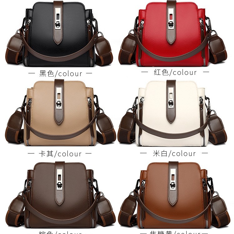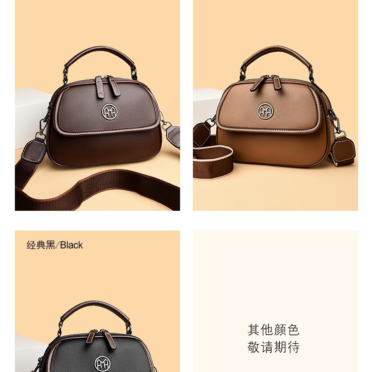 简约软皮手提包女包新款潮流百搭大容量三层实用单肩斜挎包小圆包