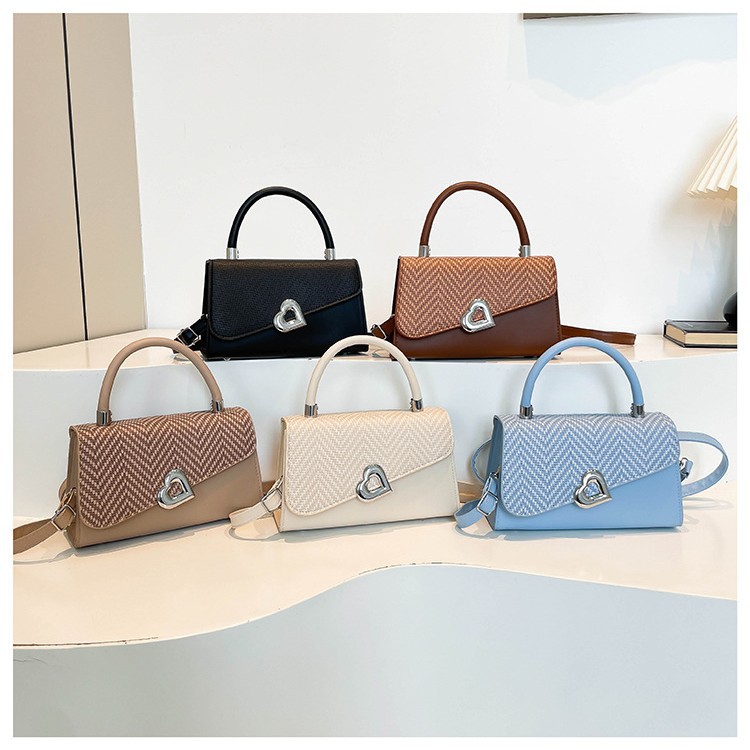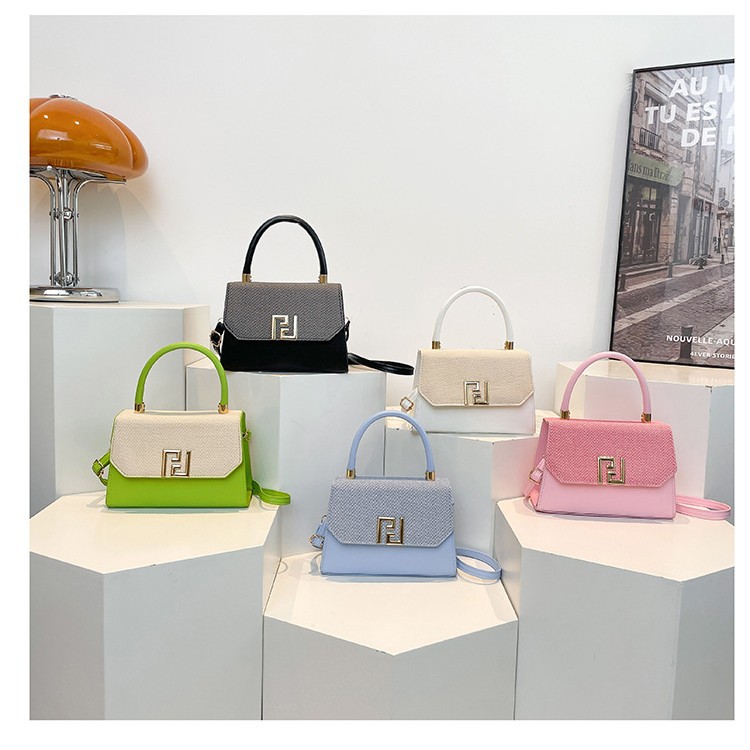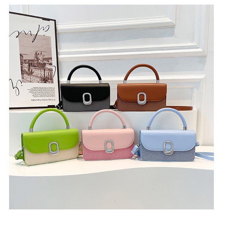 跨境2025高级感精致斜挎手提包清新设计高级感质感撞色拼接单肩包