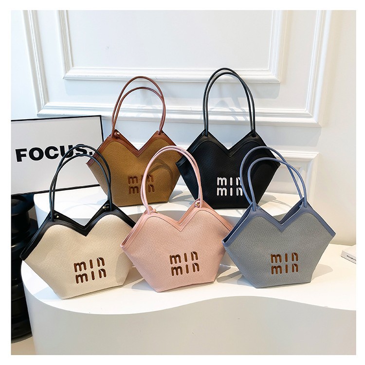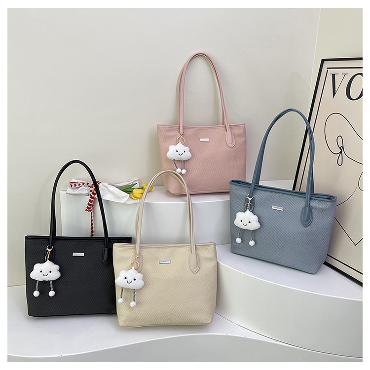 跨境2025韩版纯色慵懒风托特包休闲百搭单时尚上课补习通勤手提包