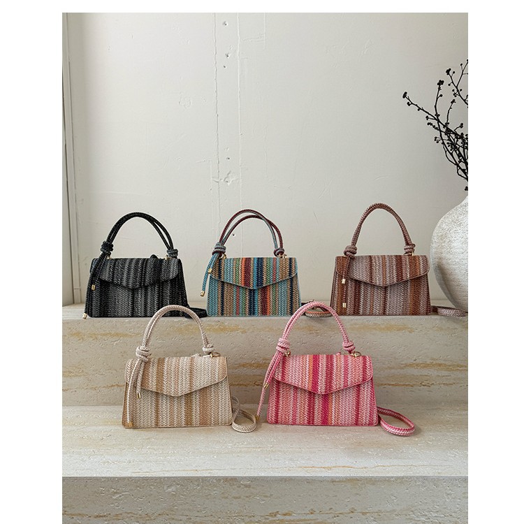 单肩斜挎包时尚草编彩色条纹手机包民族风简约韩版高级款女包手提