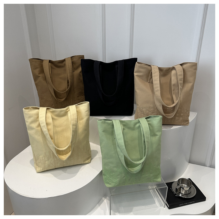 纯色休闲帆布女包2025新款学生上课手提简约百搭通勤单肩包托特包