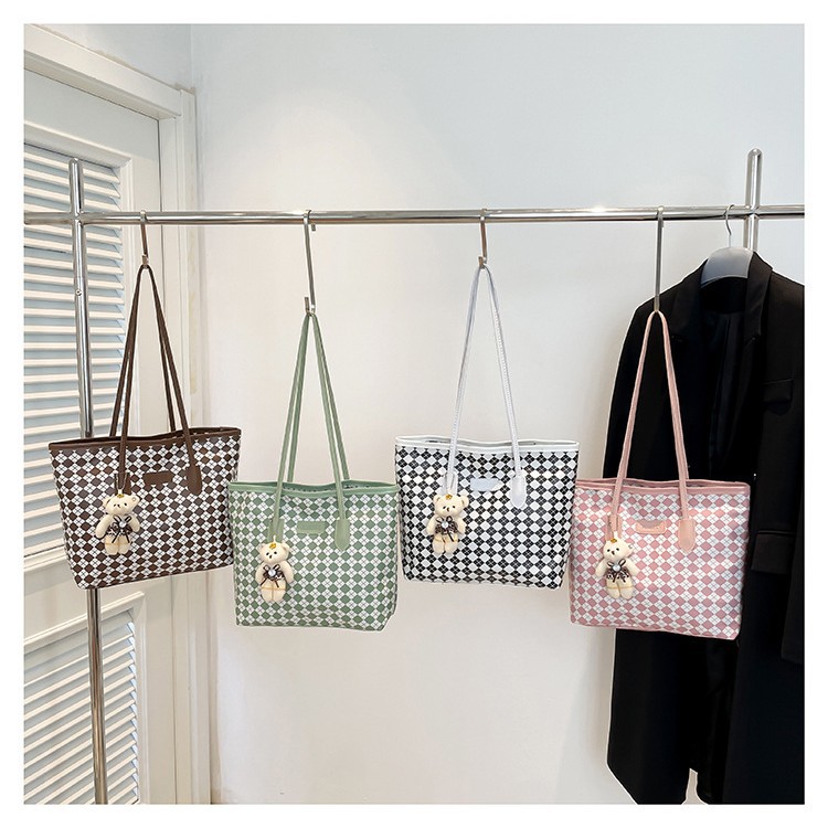 跨境2025菱形格设计可爱大容量单肩时尚韩版潮流百搭经典托特女包