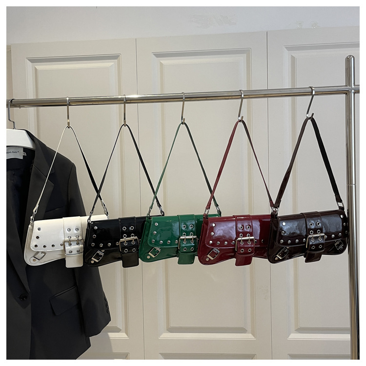 跨境朋克风铆钉单肩包手提包2025女新款质感潮酷辣妹腋下包法棍包