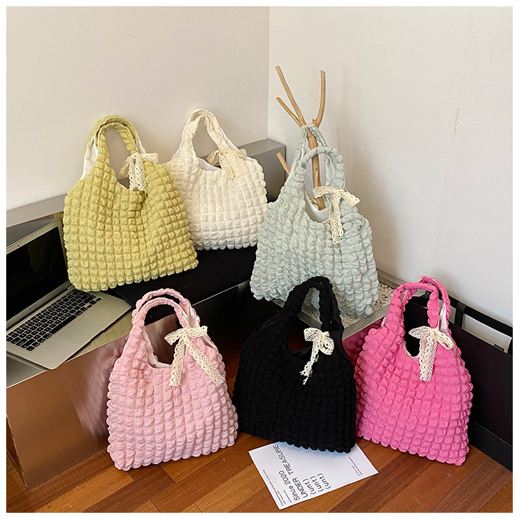 跨境2025手提时尚蝴蝶结水桶包女韩版简约百搭单肩包高级感斜挎包