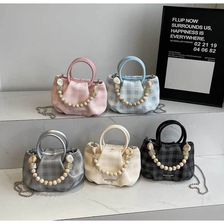 跨境2025爆款包包女bags纯欲韩系珍珠金属双链条腋下包通勤单肩包