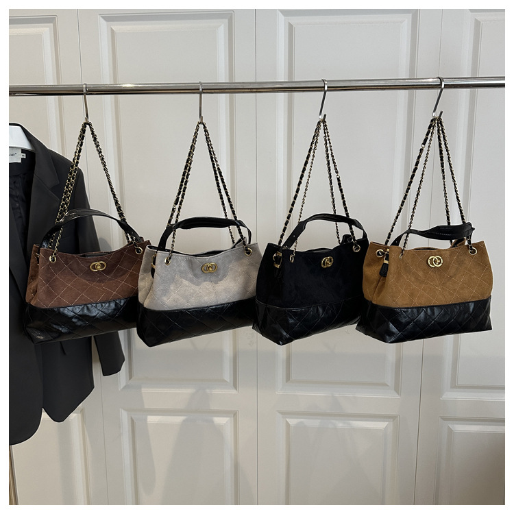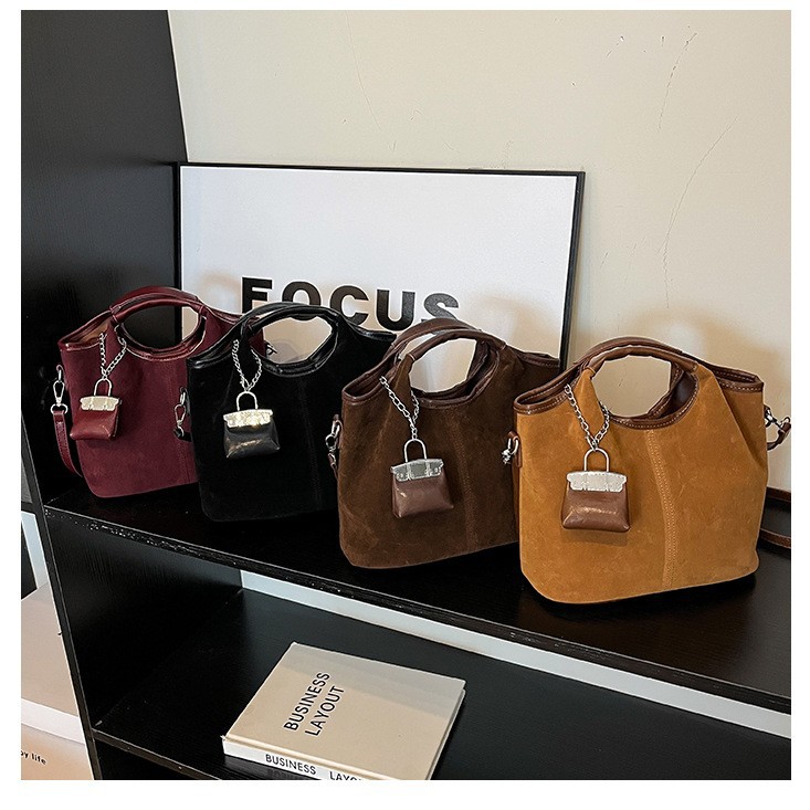 跨境时尚设计鹿皮绒质感百搭手提子母包2025秋冬新款单肩斜挎包包