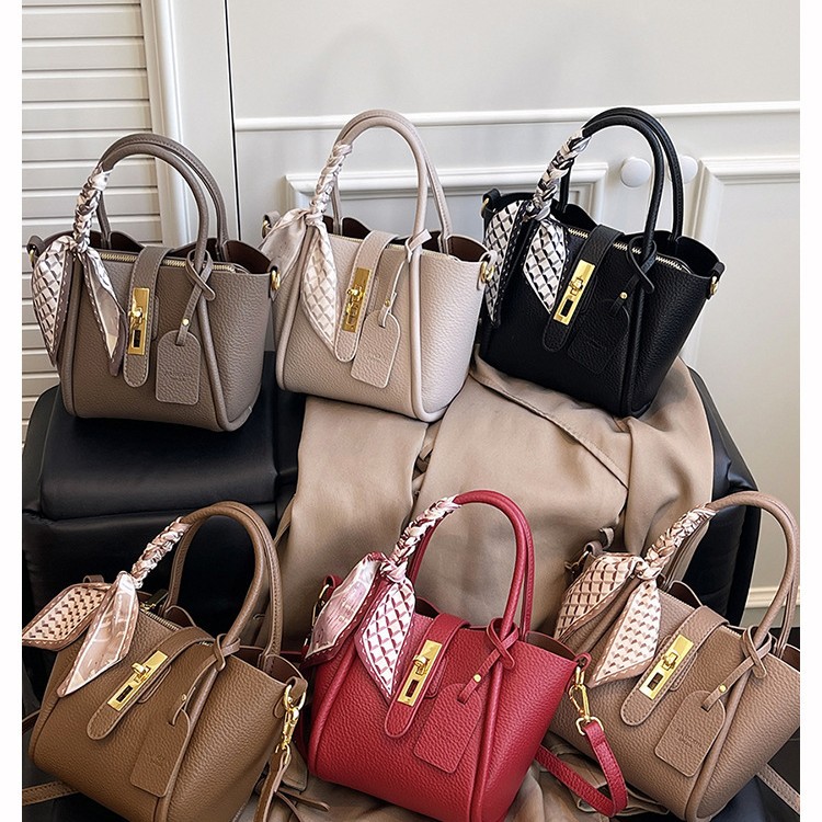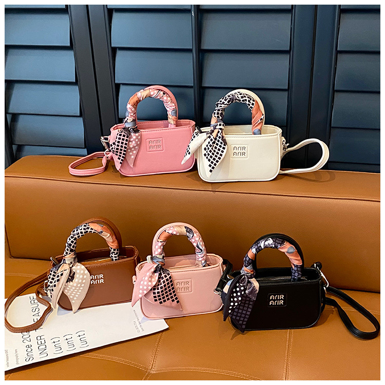 2025新款韩版简约质感大容量时尚拼接休闲丝巾斜挎手拎单肩小方包