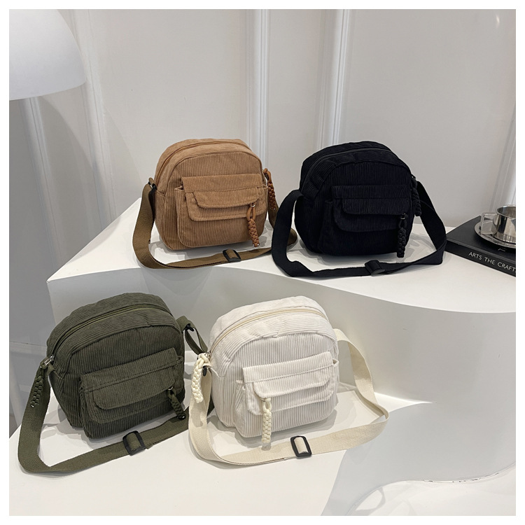 跨境2025灯芯绒新款简约时尚纯色条绒布校园风女生单肩斜挎小包包
