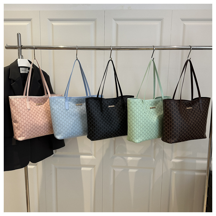 跨境2025新款大容量通勤托特包时尚印花大包包女上课通勤单肩包包