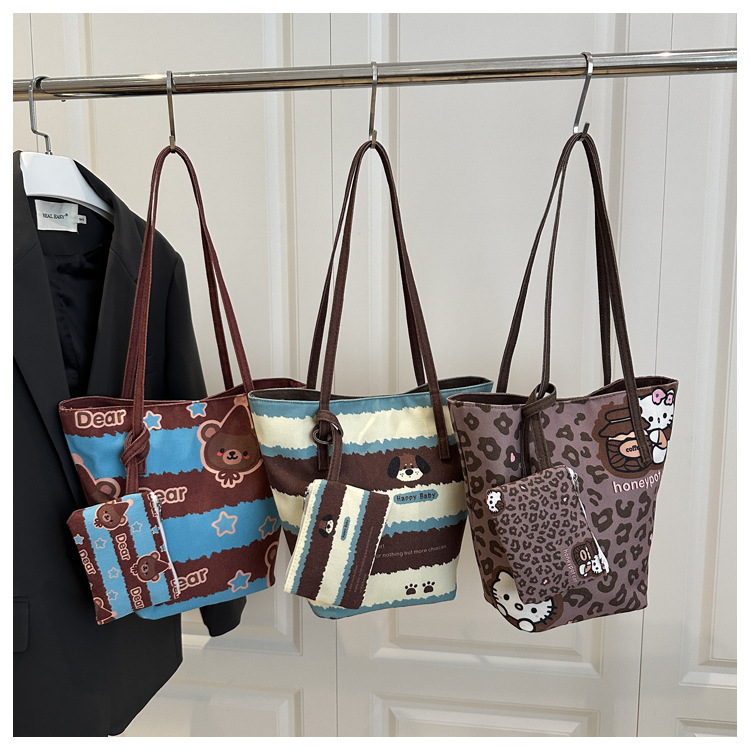 跨境复古大容量条纹腋下包2025新款卡通水桶包休闲通勤单肩包女包