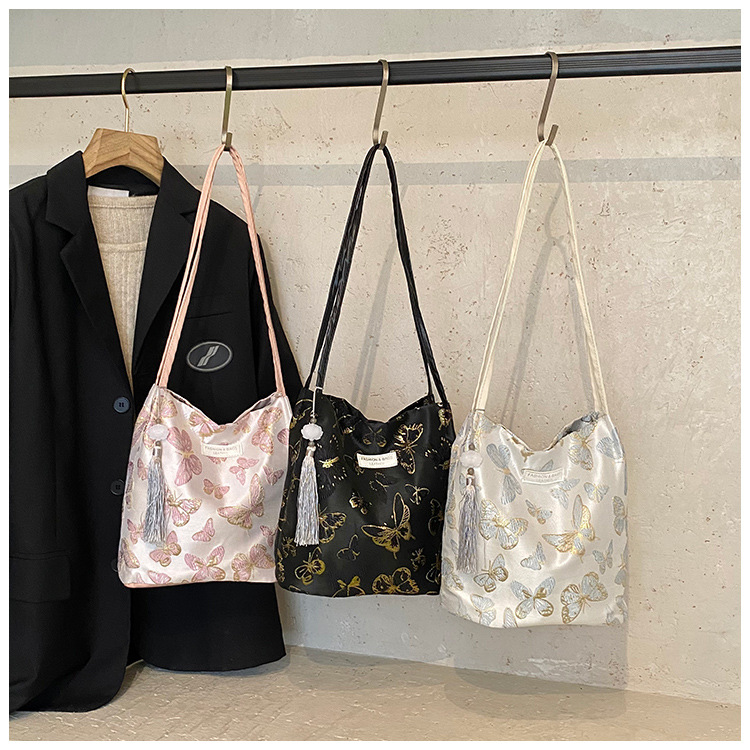 外贸新中式丝缎高级感百搭水桶包2025新款夏季女士单肩斜挎腋下包