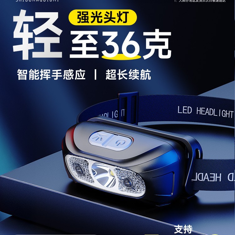 LED头灯超亮可充电头戴式强光感应特亮小型便携式夜钓灯新品推荐