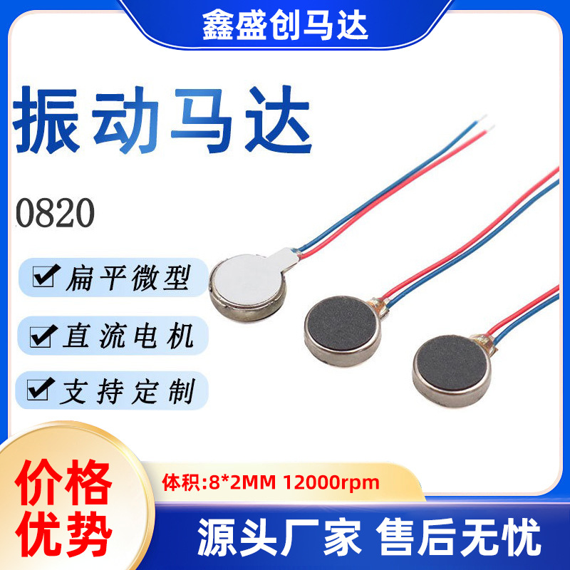 0820扁平振动马达钮扣电机微型扁直流电机 微型振动器小马达