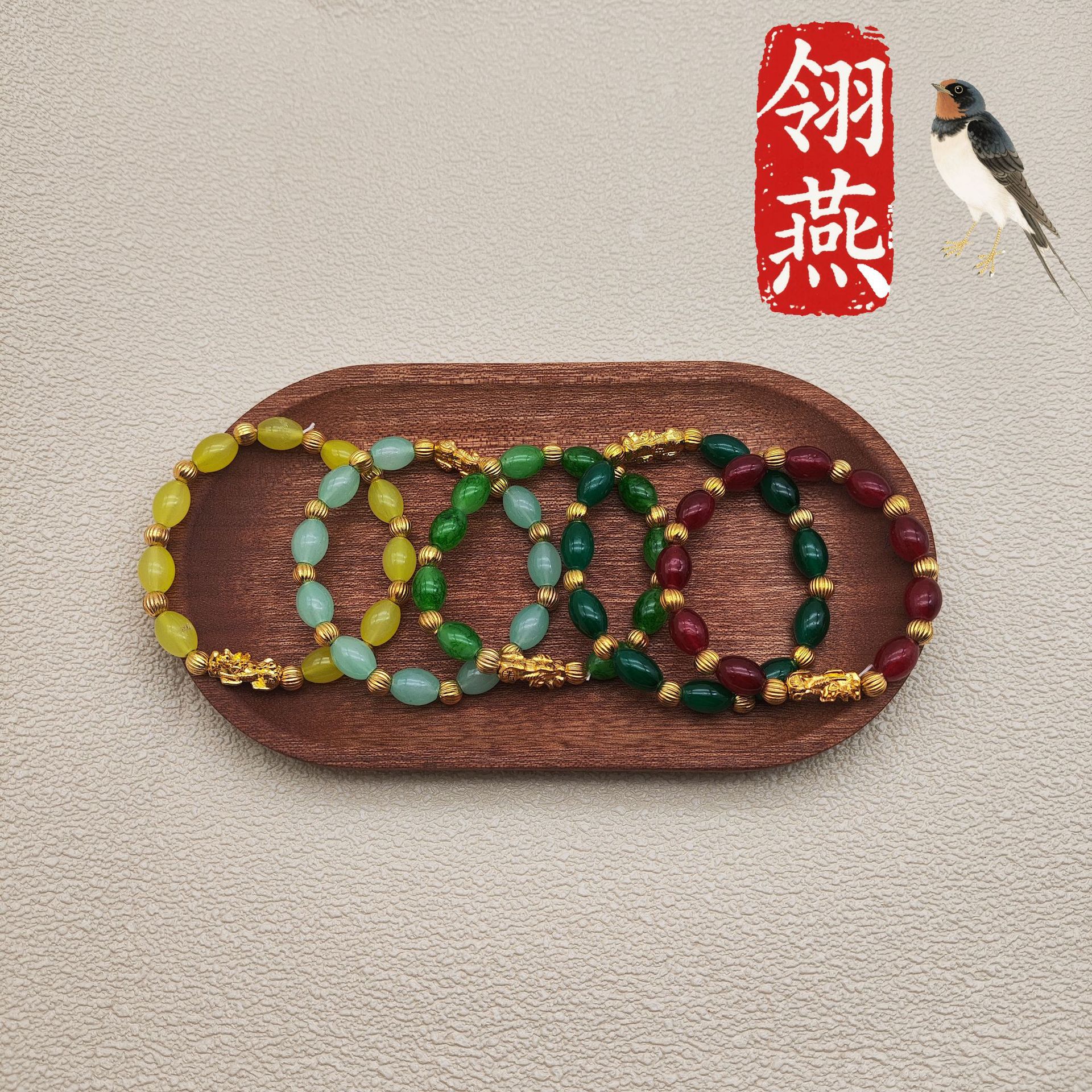 仿黄玛瑙翡翠玉石手串生辰石富贵石黄玉手链原创财富石翡翠