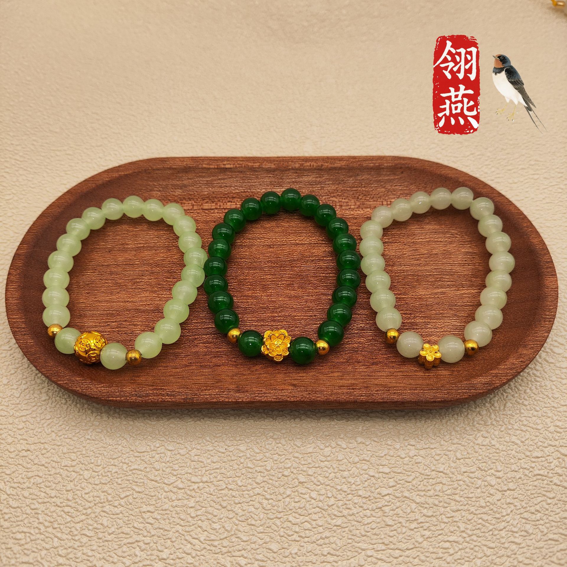 仿玉手链国风新中式手链莲花串珠手女简约手串高颜值古风手饰
