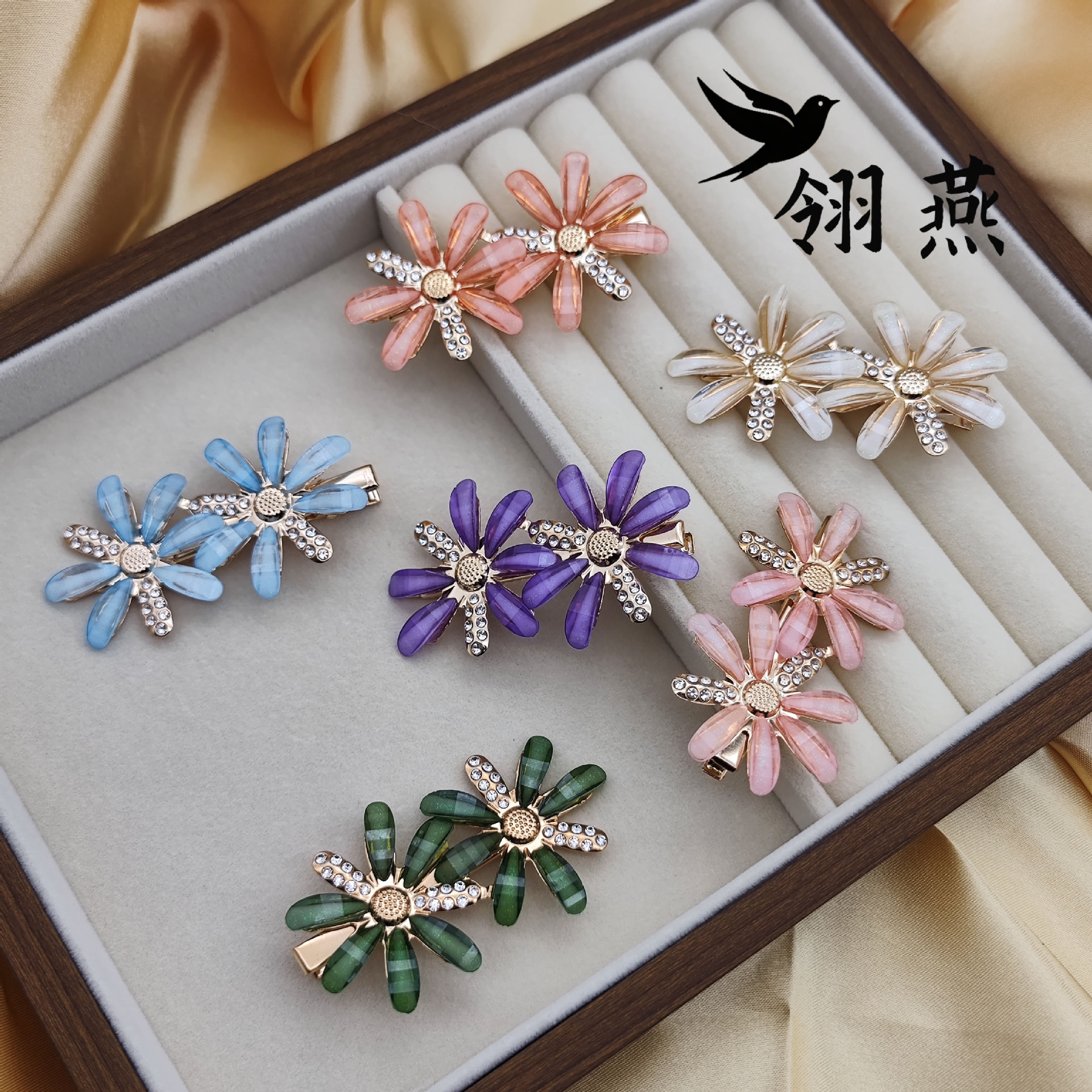 轻奢定制锆石鸭嘴夹韩国流行原创花朵头饰ins锆石气质百搭发夹