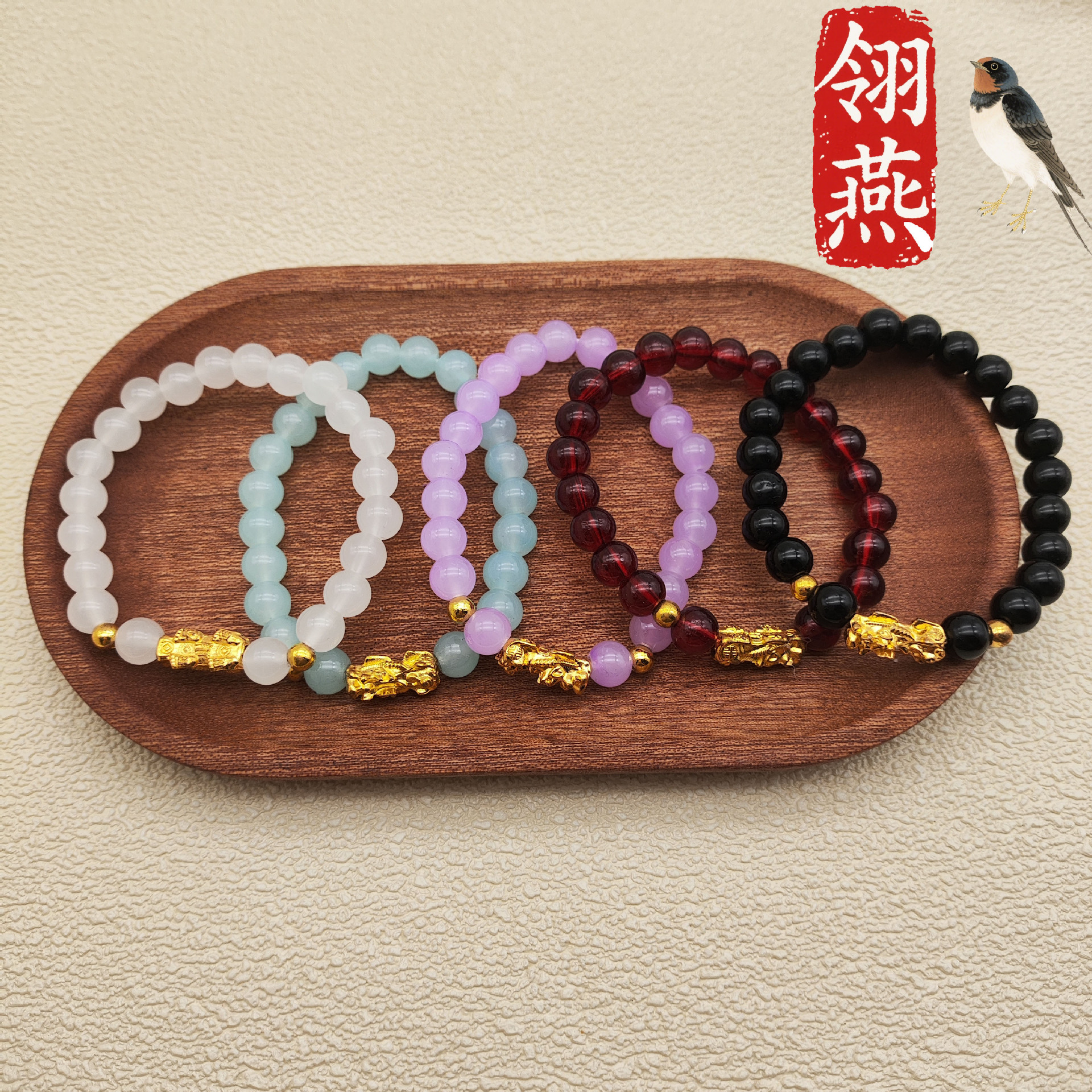 新款招财彩色貔貅手串金珠情侣款个性手链新中式国潮地摊礼品批发