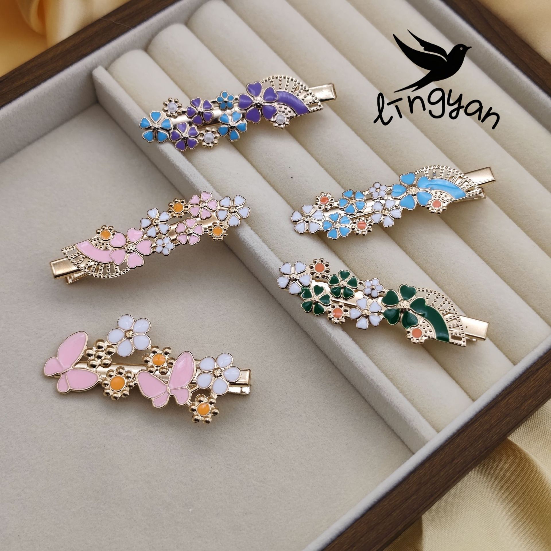 跨境韩版小清蝴蝶镶钻发夹外贸时尚潮流个性发夹头饰工厂直销批发