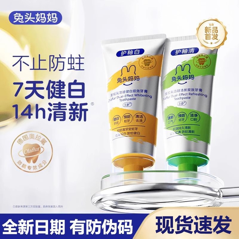 兔头妈妈儿童专用牙膏奥拉氟双效宝宝防蛀防龋齿固齿健白清新换牙