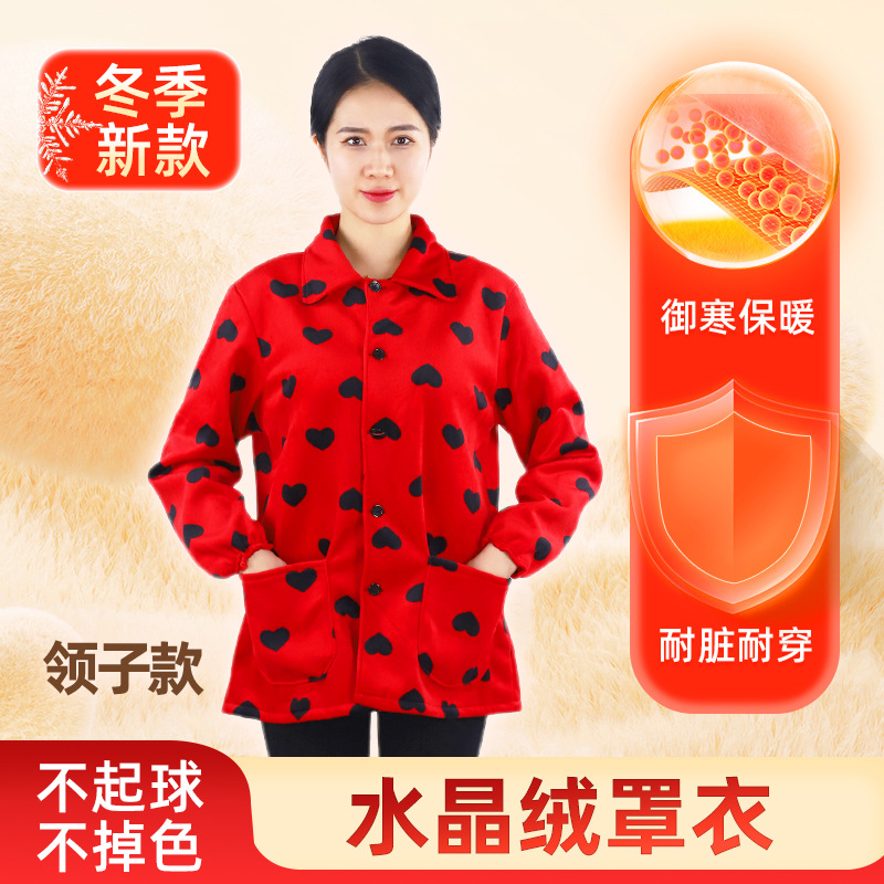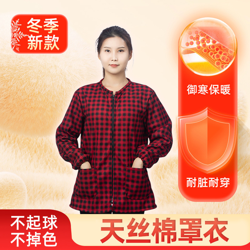 秋冬季羽绒服罩衣妈妈保暖长袖工作服绒面护衣家用厨房中老年围裙
