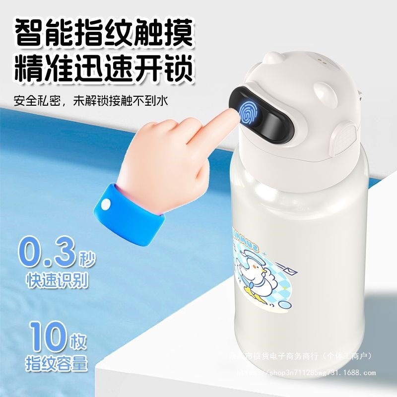 指纹解锁儿童保温杯水杯杯身智能学生不锈钢吸管水壶杯身