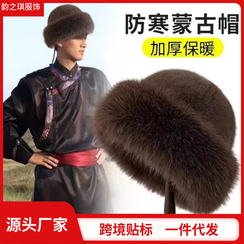 仿皮草狐狸毛蒙古帽女冬季加厚保暖毛绒帽子女2025新款东北防寒帽