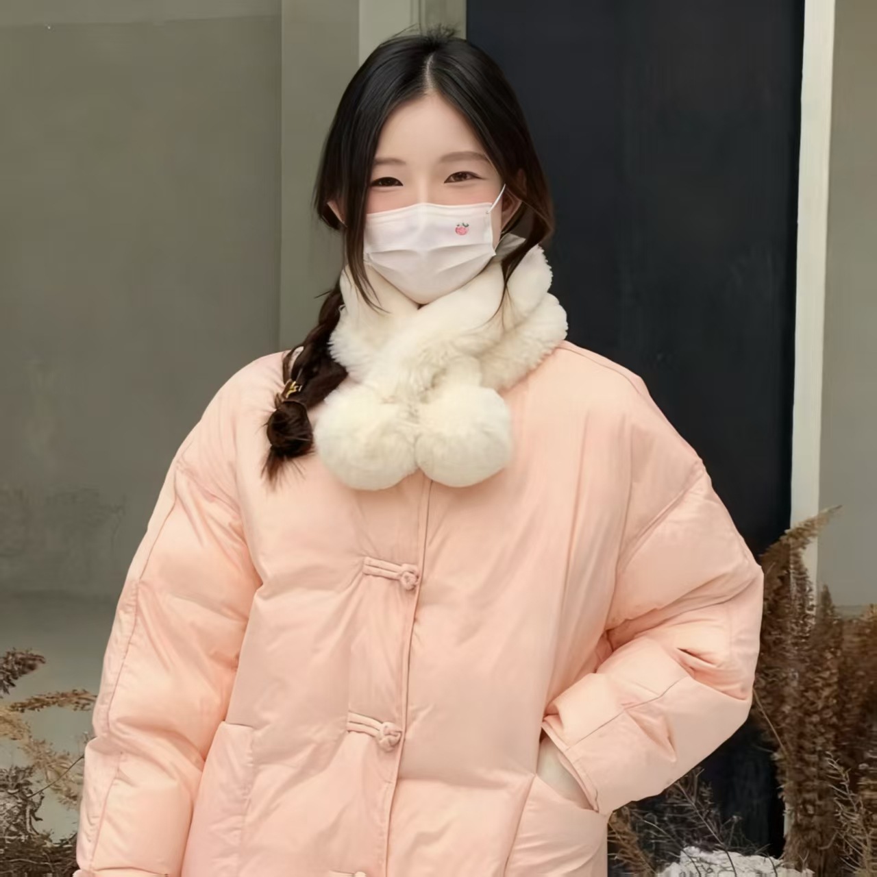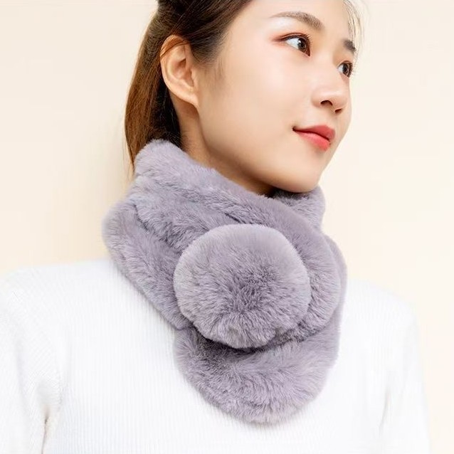 跨境新中式毛球毛绒围巾仿獭兔毛两管交叉围脖冬季小巧气质保暖女