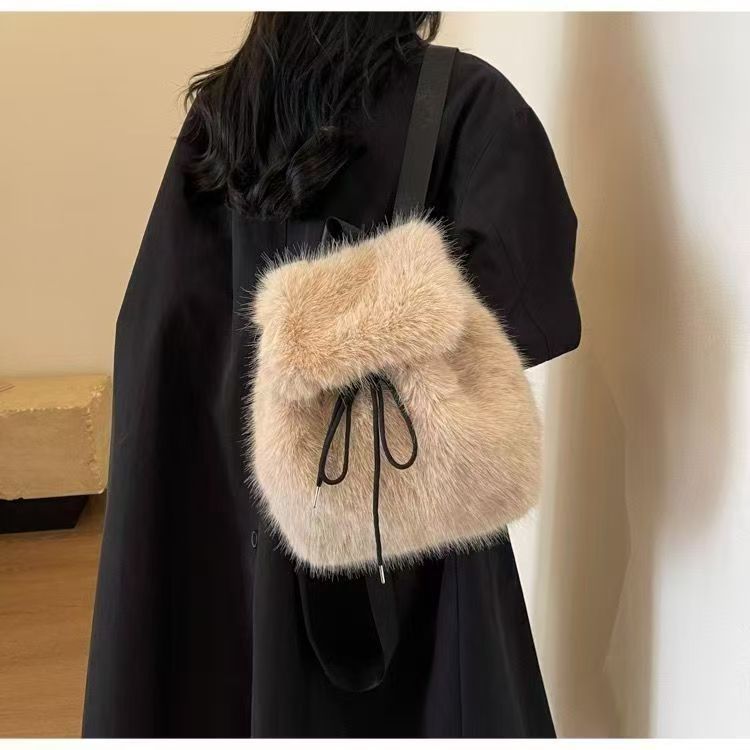 2025新款高级毛毛背包秋冬时尚仿狐狸毛双肩可爱书包百搭毛绒包包