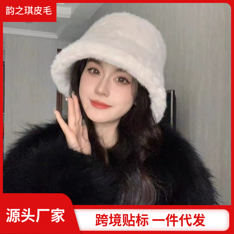 仿毛包头帽女秋冬时尚保暖简约仿皮草盆帽显脸小毛绒帽子批发