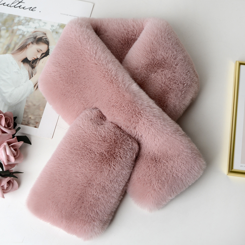跨境围巾女冬季百搭双面毛绒保暖韩版仿皮草交叉护颈仿懒毛围脖