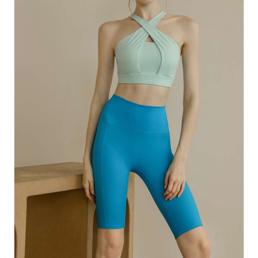 女式交叉挂脖美背运动文胸高腰口袋瑜伽健身速干弹力运动瑜伽服