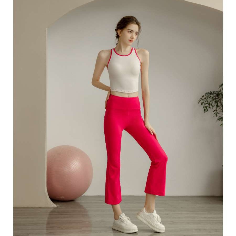 欧美撞色瑜伽服套装女背心式运动上衣高腰喇叭裤健身透气运动装