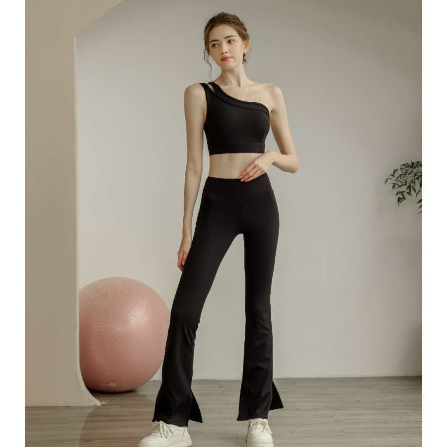 单肩瑜伽服套装女高腰喇叭裤运动健身服弹力显瘦跑步训练两件套