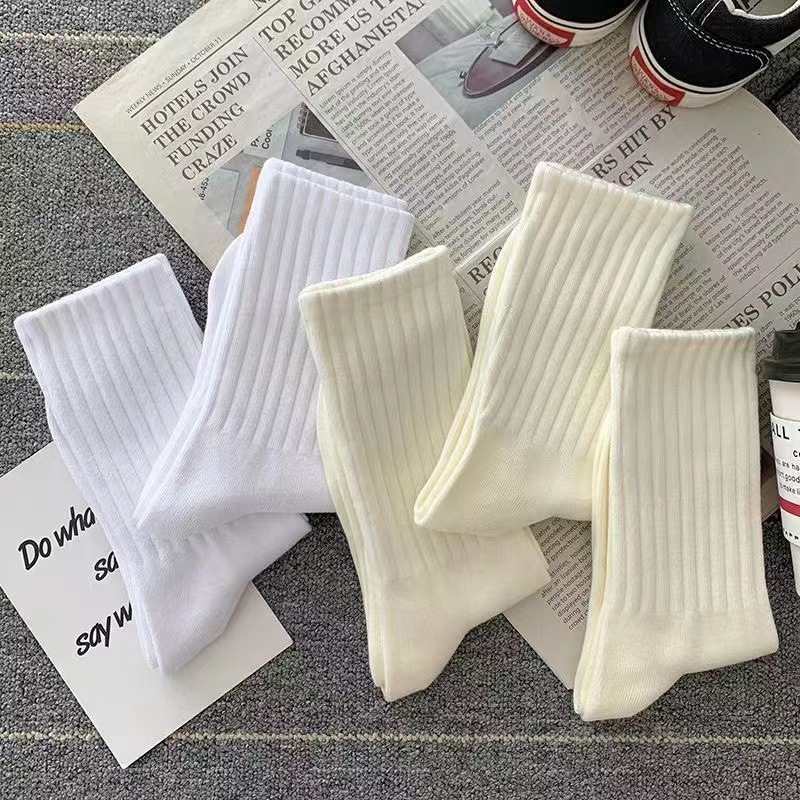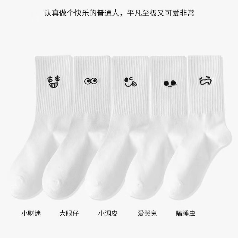 白色中筒袜子女简约潮流卡通笑脸透气表情包棉袜工厂袜子现货批发