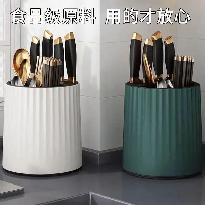 多功能旋转刀架厨房刀具置物架360度旋转刀叉架创意筷子笼收纳桶